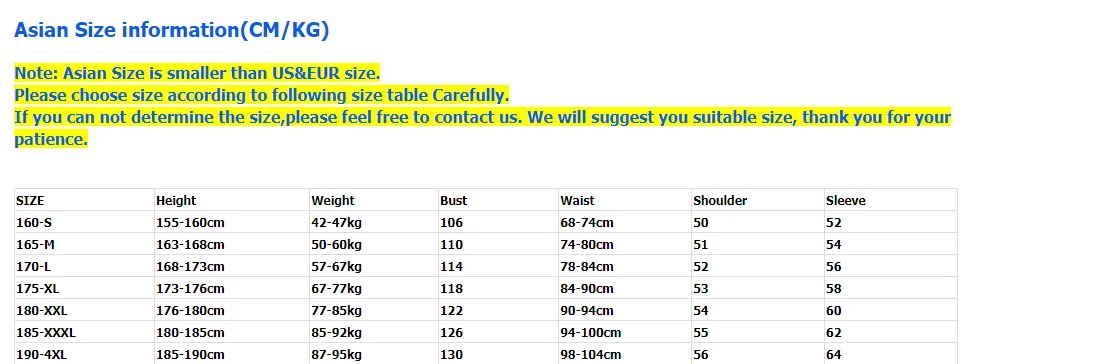 Talla: S M L XL 2XL 3XL 4XL 5XL